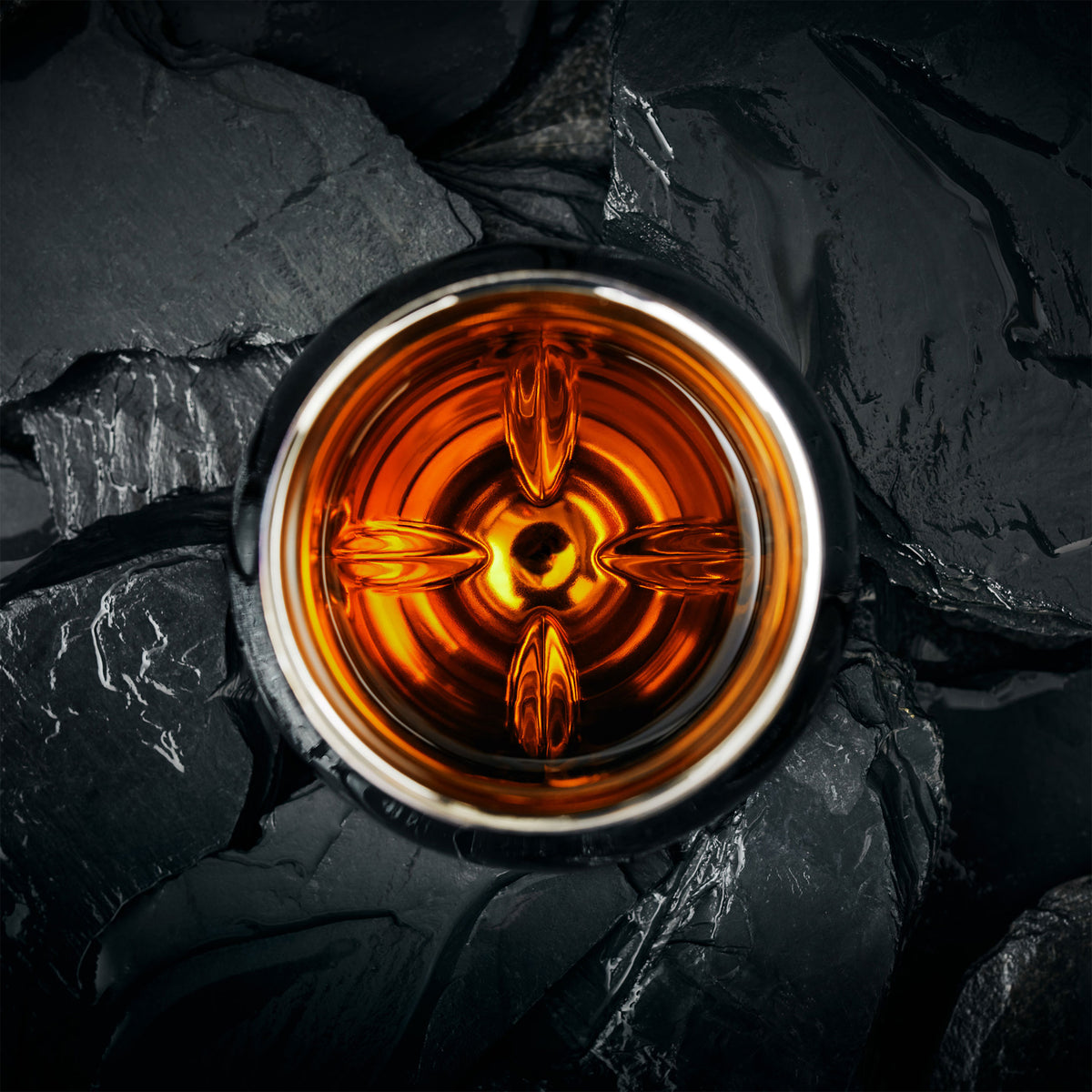 Special protrusion forms inside our tasting glass create wave-like movements in the liquid when it is swirled within the bowl. This helps to release the ethanol within the spirit, allowing the scents to become more present when nosing, which in turn improves the flavor when drinking.