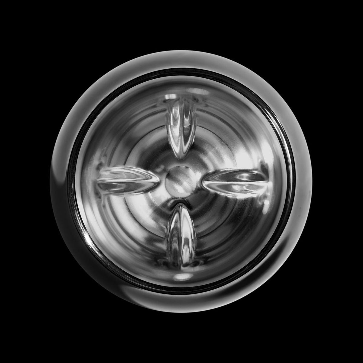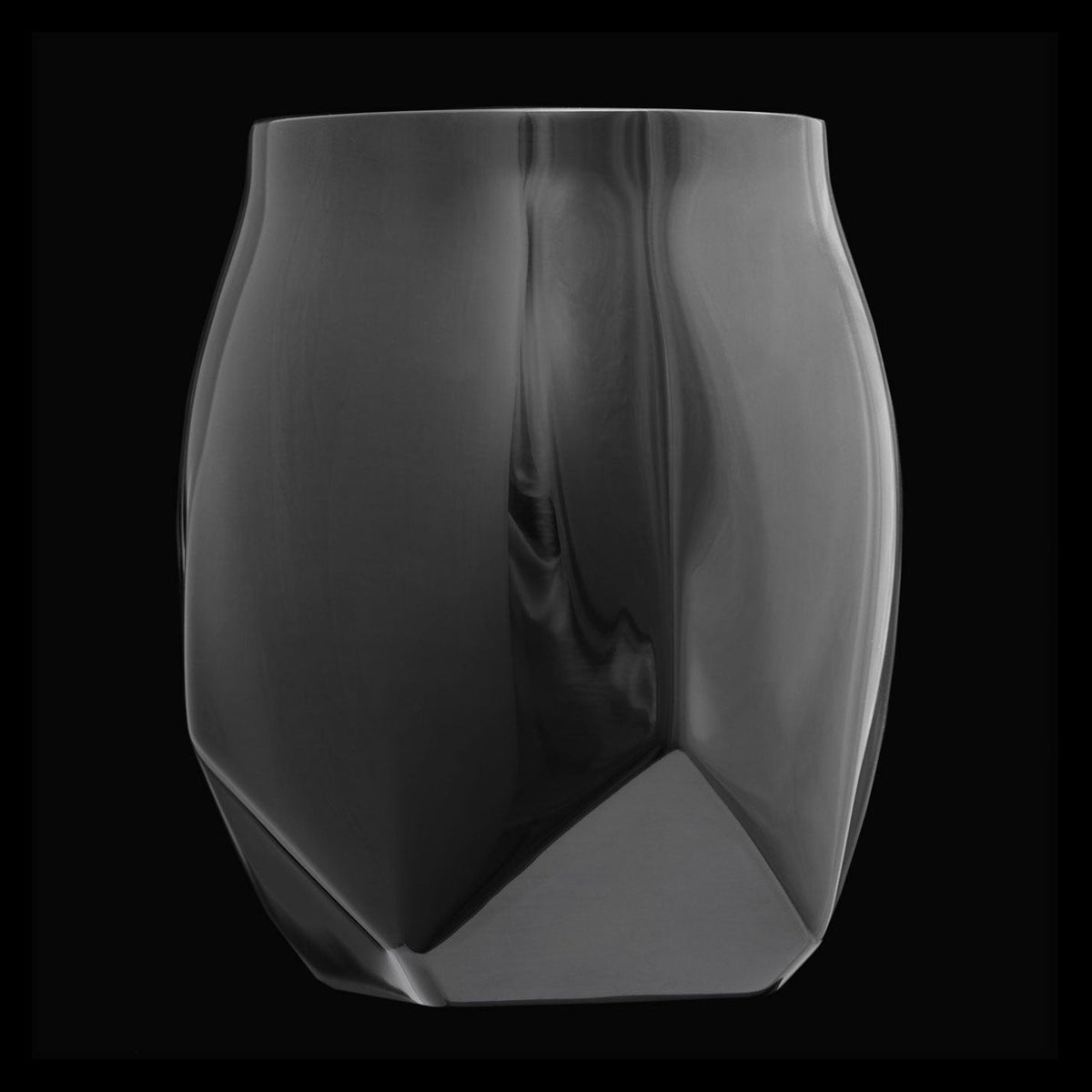 Under consideration for development for many years, the design of the tumbler mirrors that of our original double-walled glass with some key differences. Instead of mouth-blown borosilicate glass, the tumbler is produced from blow-molded stainless steel. The join at the mouth rim, where the inner and outer walls are held together, is made by electro welding, creating a fine point of contact for the lips. Inside, the tumbler is finished with a food-grade safe electroplated coating that acts as a mirror for the contents within. On the outside, the tumblers are exhaustively hand-burnished before receiving their final finish in polished stainless steel or mirror black PVD coating.
