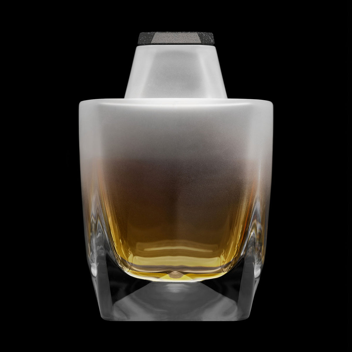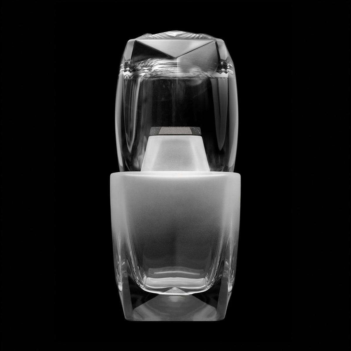 The Nyht Whisky Decanter is exhaustingly brought to life over the course of numerous processes. These include mouth blowing glass, cutting, drilling, grinding, manual and chemical polishing, sandblasting, and precision diamond wheel cutting. In all, there are over ten steps to producing the crystal vessel alone.