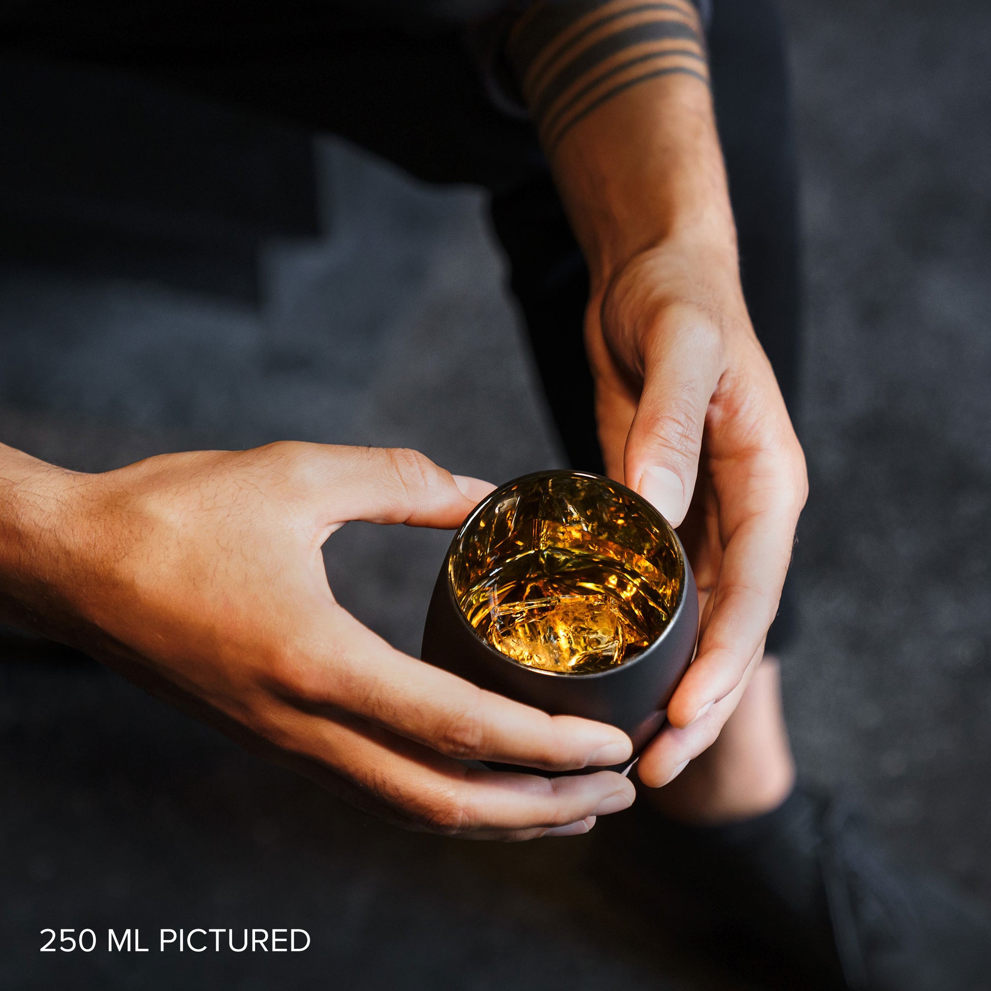 The tumbler is available in two standard sizes: a 250 ml (Old Fashioned) and a 350 ml (Double Old Fashioned). Which size you choose depends on how heavy you prefer your glass and the intended use. The DOF (Double Old Fashioned glass) is ideal for drinks with more ice or larger volumes of lower-alcohol content, though sometimes it’s simply about the feel of a weighty glass in your hand.